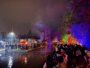 Schon vor dem Start war die Atmosphäre beeindruckend. Rund um den Oberbach erstrahlte das Gelände in buntem Licht, ein Fanfarenzug führte den Laternenumzug an, und die kleinen Gäste staunten über das farbenfrohe Spektakel.