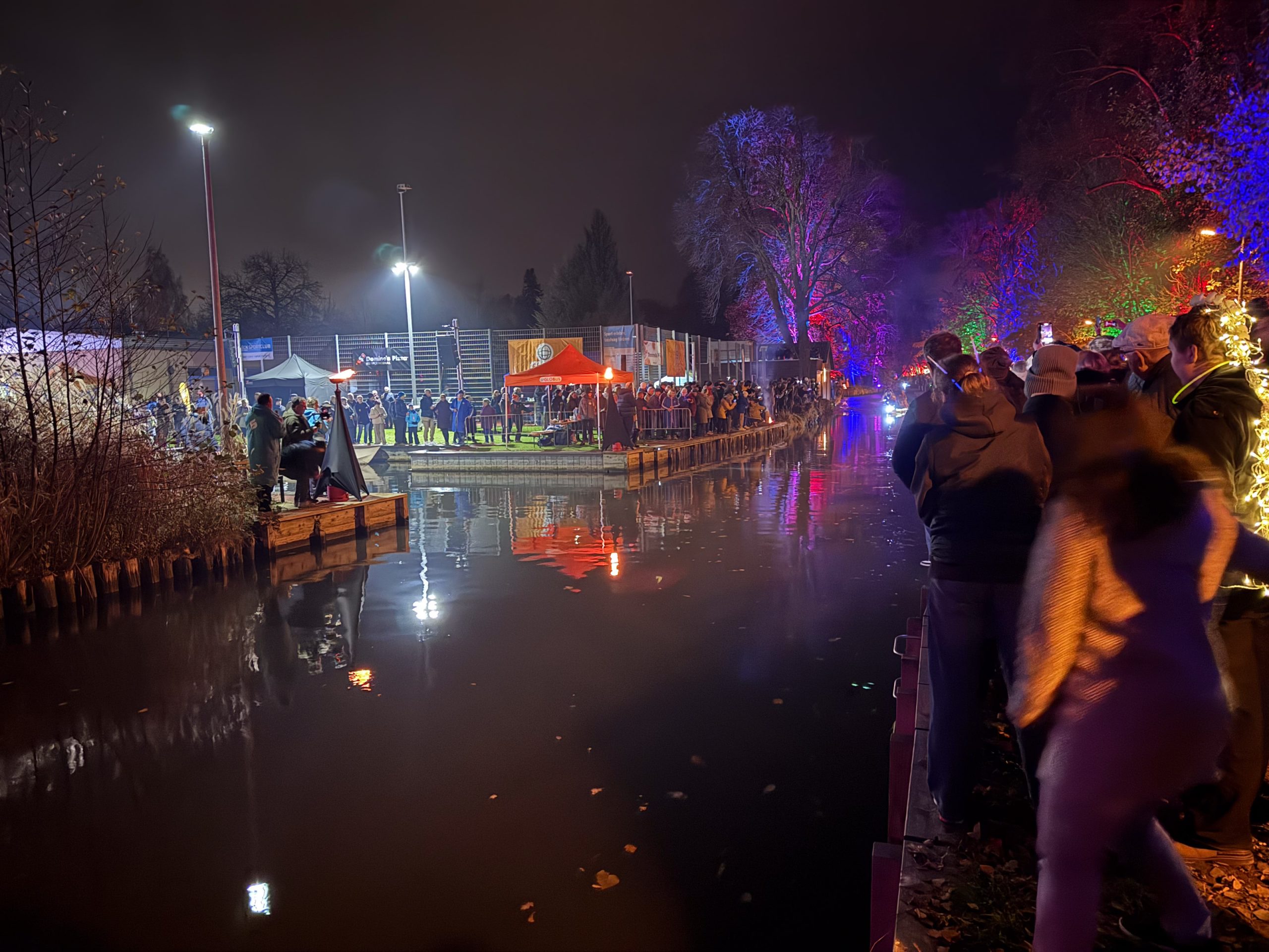 Schon vor dem Start war die Atmosphäre beeindruckend. Rund um den Oberbach erstrahlte das Gelände in buntem Licht, ein Fanfarenzug führte den Laternenumzug an, und die kleinen Gäste staunten über das farbenfrohe Spektakel.